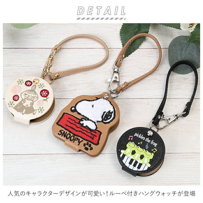 時計 キーホルダー 通販 懐中時計 ハングウォッチ キャラクター グッズ かわいい おしゃれ スヌーピー ムーミン かえるのピクルス ルーペ付 カラビナウォッチ チェーン キーホルダーウォッチ 大人 向け プレゼント ギフト 生活雑貨