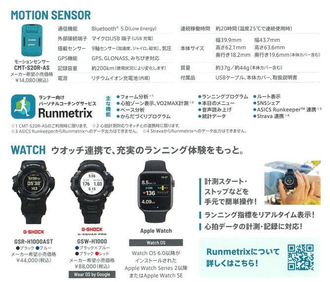 商品情報 カシオのセンシング技術と、ASICSのスポーツ工学の知見を融合した「Runmetrix」は、いまの走りを計測し、あなたの目標設定と改善に向けてのアドバイスを提供。